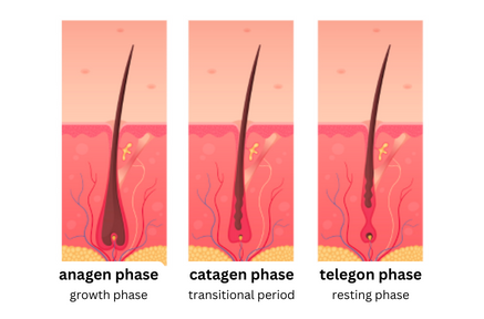 The hairs do not grow continuously but in cycles, and hair growth consists of three distinct cycles.