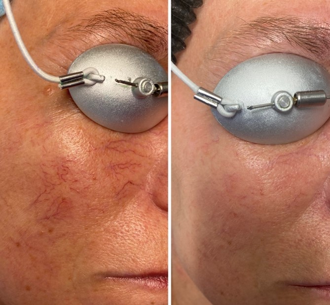 Because the absorption of the targeted light by hemoglobin is more concentrated while encased in the blood capillaries, treatment of capillary issues can typically be completed in one or two sessions. The treatment may cause scorching and stinging feelings. A superficial scab may form at the thicker veins or in glomerular regions, which will slough off on its own in 5 to 7 days.